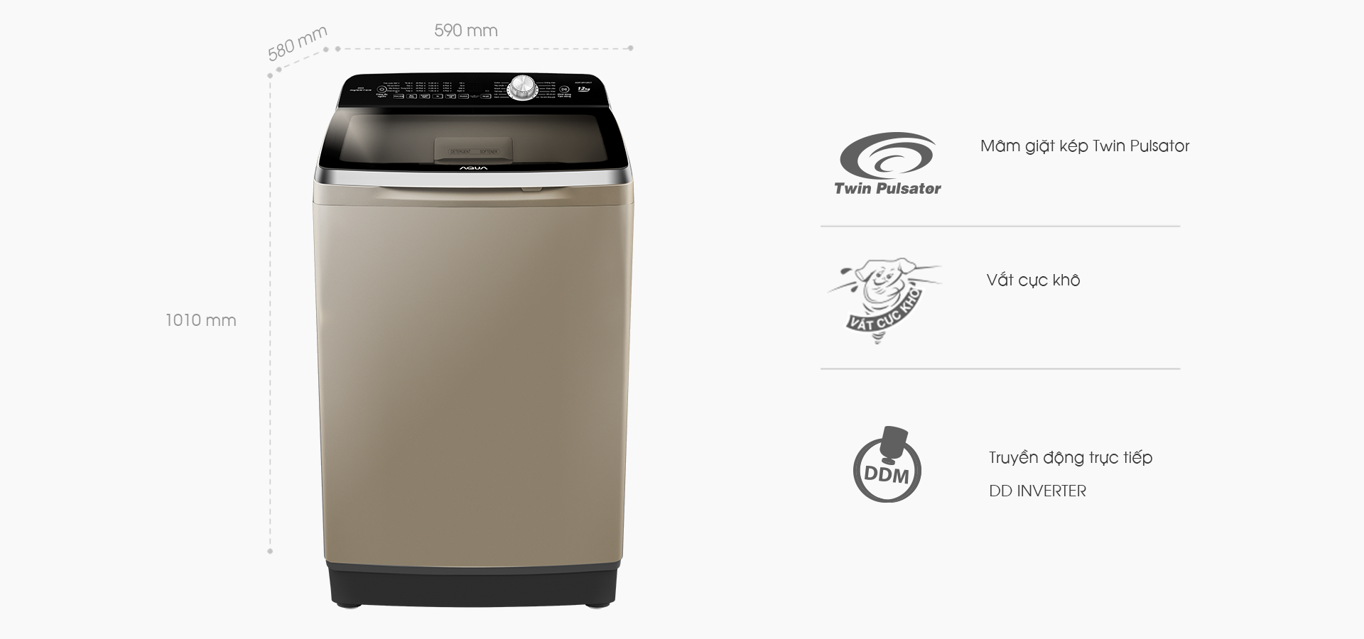 Khối lượng giặt (KG)9.5Thiết kế