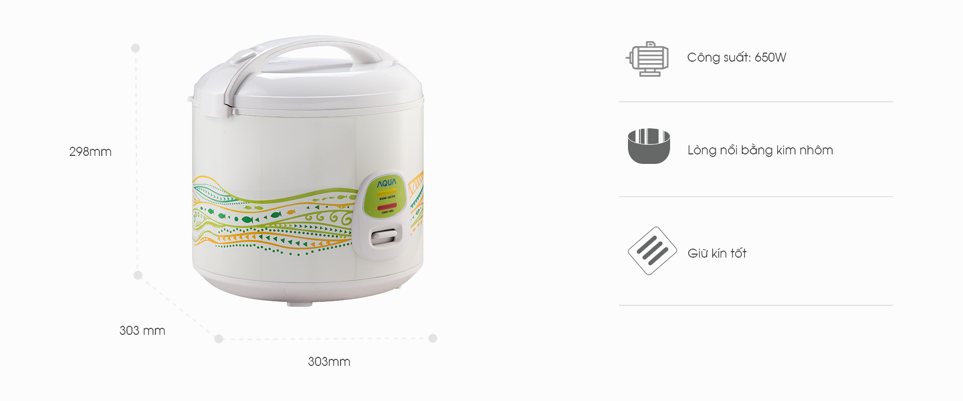 Kích thước (R x S x C) (mm)303 x 303 x 298Công suất (W hoặc HP)650